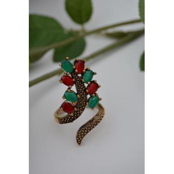 STONEAGE Bayan Ayarlanabilir Yakut ve Zümrüt Taşlı Yüzük